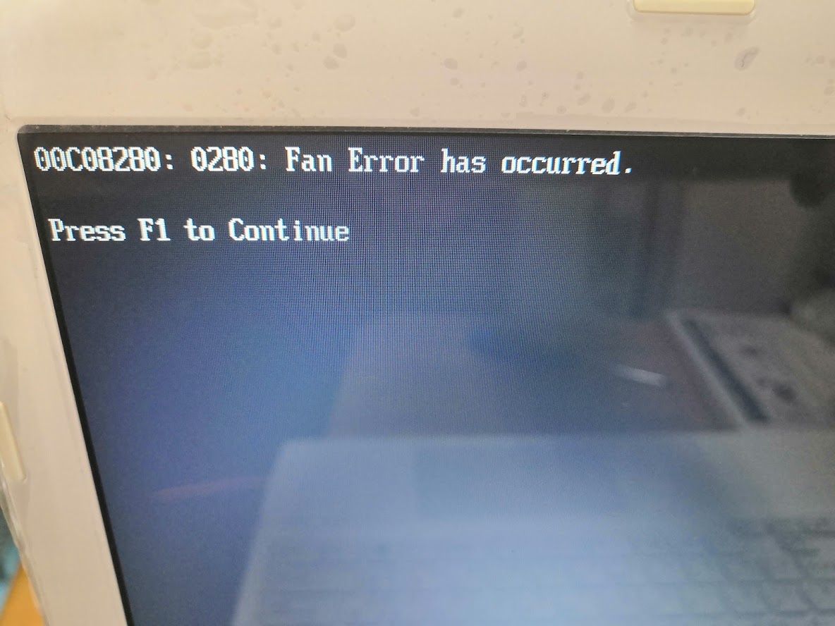 Press F1 to Continue とあるのでF1を押すと起動はしますが、冷却用のファンが回っていないというエラー警告です。